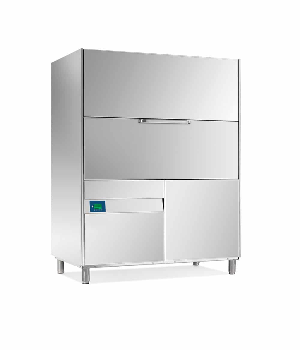 Διαθέτει επιτρεπόμενο μέγεθος σκευών έως 82 cm. Διαθέτει παροχή νερού σε θερμοκρασία 55°C και η κατανάλωση νερού ανά κύκλο πλύσης είναι 8,6 lt. Επίσης, διαθέτει μπόιλερ με χωρητικότητα 20 lt με ισχύς αντιστάσεως μπόιλερ 9 kW. Ο κάδος έχει χωρητικότητα 120 lt με ισχύς αντιστάσεως κάδου 9 kW. Η θερμοκρασία πλύσης είναι στους 55°C και ξεβγάλματος στους 85°C. Η ισχύς της αντλίας πλύσης είναι 2,9 kW (950 lt/min*)x2 και η ισχύς της αντλίας ξεβγάλματος είναι 250 W (120 lt/min*). Είναι τριφασικό με ισχύς 14,8 kW/ 400 V 3N- 50 Hz. Η σκληρότητα του νερού πρέπει να είναι 2-8 °F και η πίεση δικτύου παροχής νερού 200-400 kPa. Οι εξωτερικές του διαστάσεις είναι 149 x 88,5 x 197/231 cm (κλειστή/ανοιχτή πόρτα).