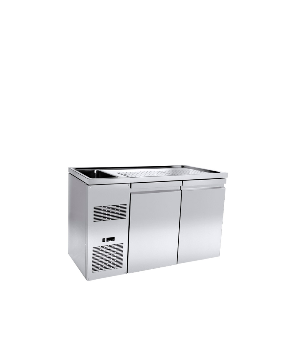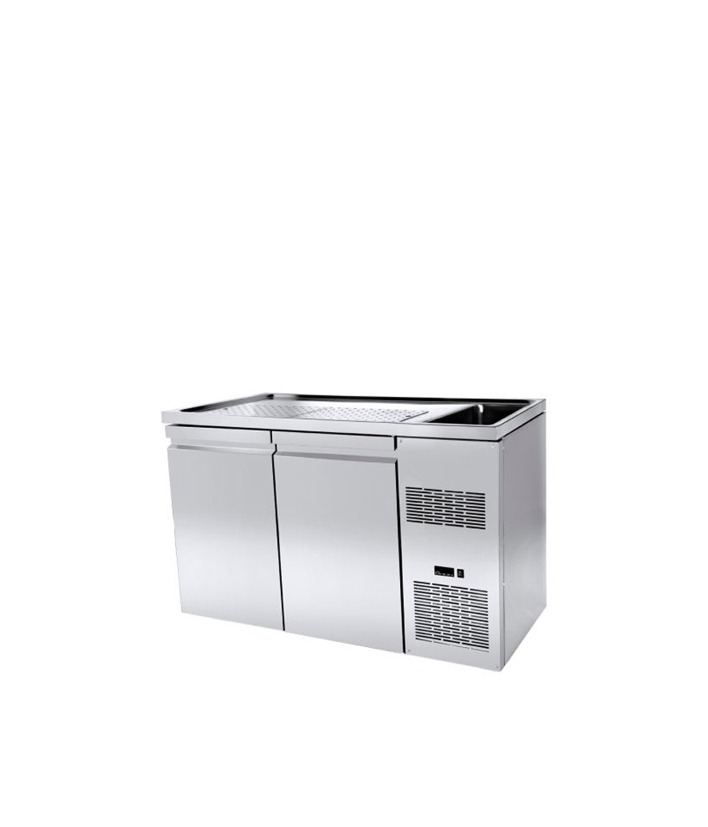 Το Ψυγείο Μπύρας με 2 Πόρτες & 1 Γούρνα – PA GE 160L1, του ελληνικού εργοστασίου Niki Inox, είναι ψηλός πάγκος συντήρησης μπύρας. Είναι το κατάλληλο ψυγείο πάγκος για συντήρηση μπύρας, χάρη στις δύο ψηλές πόρτες που διαθέτει με χώρο αποθήκευσης 2 x (44 x 55 x 80 cm). Έτσι, σας επιτρέπει να τοποθετήσετε τα βαρέλια μπύρας και να διατηρήσετε τη μπύρα σε θερμοκρασία από -1°C έως +8°C. Επίσης, διαθέτει 1 γούρνα 30,5 x 50,5 x 30 cm, στην πλευρά που βρίσκεται το ψυκτικό μηχάνημα. Στην υπόλοιπη επιφάνεια εργασίας έχει τρύπες αποστράγγισης με διάσταση 97,8 x 27,8 cm (MxB). Διατίθεται είτε με γούρνα και ψυκτικό μηχάνημα αριστερά (κωδ. L1) είτε με γούρνα και ψυκτικό μηχάνημα δεξιά (κωδ. R1). Η ισχύς του ψυκτικού μηχανήματος είναι 1/4 Hp. Αυτό το ψυγείο πάγκος συντήρησης έχει βάθος 70 cm και είναι κατασκευασμένο από ανοξείδωτο χάλυβα (Inox 304). Διαθέτει μόνωση πολυουρεθάνης, κουμπωτά μαγνητικά λάστιχα και ηλεκτρονικό θερμοστάτη με δυνατότητα αυτόματης απόψυξης. Τα πόδια είναι ρυθμιζόμενα.