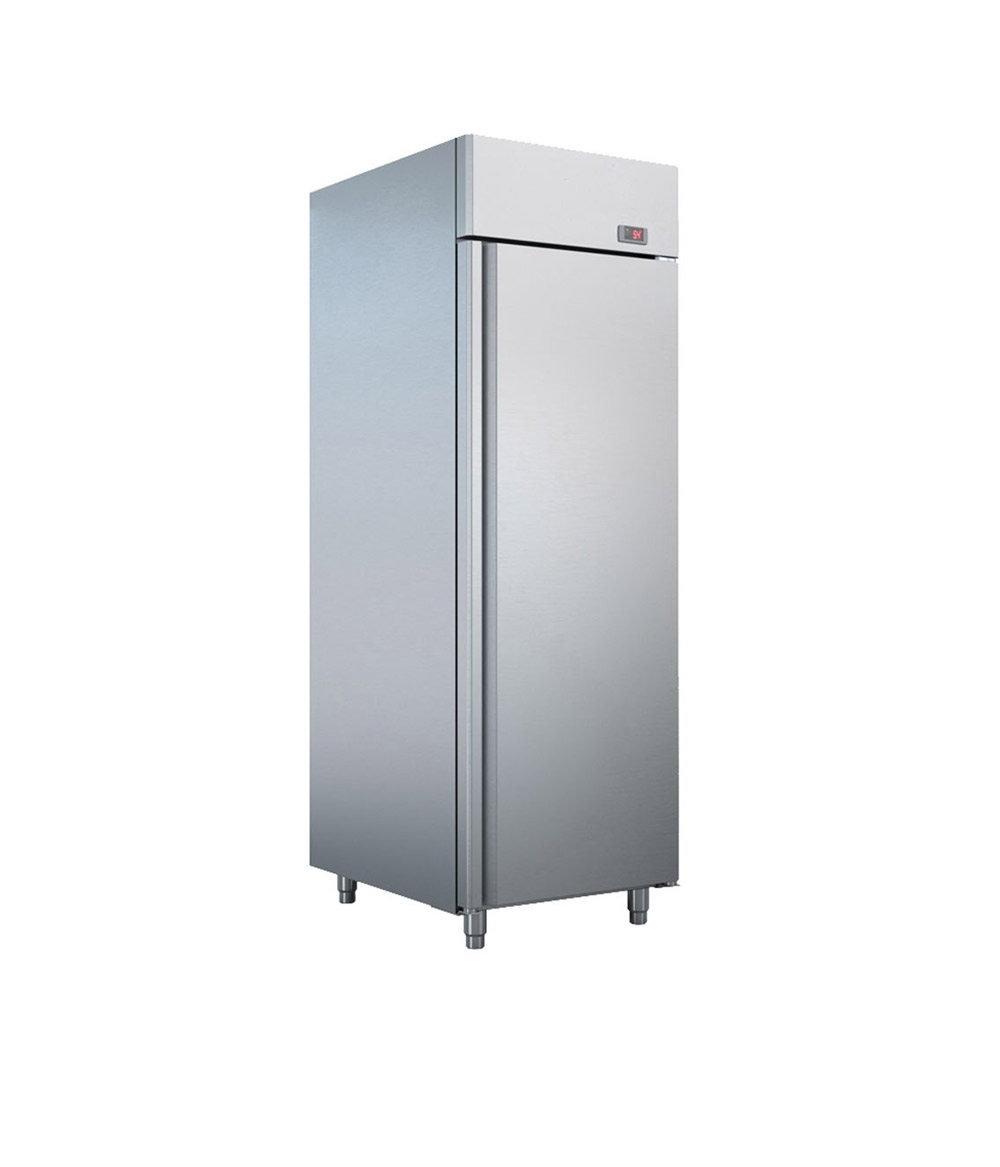 Το επαγγελματικό Ψυγείο Θάλαμος Συντήρηση 1 Πόρτα – US 70 ανήκει στη σειρά επαγγελματικών ψυγείων του ελληνικού εργοστασίου Bambas Frost. H χωρητικότητα αυτού του ψυγείου θαλάμου είναι 620 lt. Διαθέτει 1 ανοξείδωτη πόρτα, διάστασης M 69 x 167,5 Y cm. Σας επιτρέπει να συντηρήσετε τα τρόφιμα σε θερμοκρασία από -1°C έως +10°C. Η ψύξη είναι βεβιασμένης κυκλοφορίας με αυτόματη απόψυξη. Διαθέτει αγωγό αέρα για ομοιόμορφη κατανομή της ψύξης. Πιο συγκεκριμένα, εξασφαλίζει ομοιόμορφη θερμοκρασία διανέμοντας τον αέρα σε τρία στάδια σε όλο το θάλαμο, με αυτό τον τρόπο οι αποκλίσεις της θερμοκρασίας σε όλο το χώρο του ψυγείου είναι μηδαμινές, κρατώντας τα τρόφιμα φρέσκα για μεγαλύτερο χρονικό διάστημα. Το ψυκτικό μηχάνημα βρίσκεται στο πάνω μέρος με ισχύς 3/8 (450 W). Το φρέον είναι οικολογικό (R290).